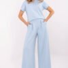 Stylish palazzo-style sweatpants, combining comfort and elegance in everyday stylizations. Made of a soft blend of viscose, polyester, and elastane, they provide comfort and freedom of movement. The smooth fabric and wide legs give them a fashionable, slightly oversized character. The high waist with elastic band ensures a perfect fit to the silhouette, and decorative pleats on the front add a unique expression to them. A model without fastening, equipped with practical side pockets. Perfect for everyday wear, both for sporty and more elegant combinations.