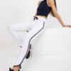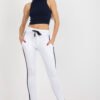 Casual-sport sweatpants are a comfortable and stylish option for everyday wear and physical activities. Made from a soft blend of cotton, polyester, and elastane, they provide comfort, good ventilation, and flexibility. The high-waisted model with a tie at the waist perfectly fits the silhouette, emphasizing the waist. The smooth fabric is complemented by contrasting stripes on the sides, which visually elongate the legs and add a sporty character. The leg cuffs are finished with a trendy slit at the bottom, giving the pants a lightness and a modern look. The slip-in side pockets increase functionality. Perfect for everyday wear, a walk, or a workout.