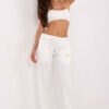 Sweatpants with a casual character, created with everyday comfort in mind. Made of soft and durable blend of cotton and polyester, they provide comfort and resistance to creases. The smooth material makes the model look universal and easily fits into different stylizations. The pants have a high waist and wide legs with a distinct crease, giving them a modern, slightly elegant touch. In the waist there are practical ties and side pockets, emphasizing their functionality. An additional accent is a subtle embroidery placed on one of the legs, adding an original character to the whole. Perfect for everyday wear, combining sporty freedom with a touch of sophistication.