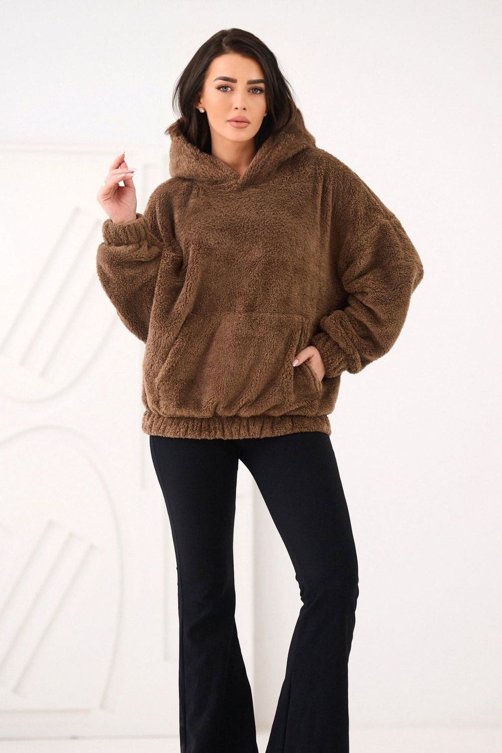 Modern and comfortable women’s casual sweatpants, perfect for everyday wear and for a casual work setting. Made from a pleasant to the touch blend of viscose and polyester, they guarantee comfort and an elegant, refined look. The high-waisted and tapered legs model perfectly emphasizes the silhouette, providing freedom of movement at the same time. An elastic band is sewn in the back of the waist, allowing the pants to fit perfectly to the figure. For added functionality, they are equipped with side slip pockets, and a fastening belt allows you to subtly accentuate the waist. At the bottom of the legs, there are wide cuffs with decorative buttons, adding a stylish character to the whole. This is an excellent choice for women who appreciate the combination of comfort and urban elegance, perfect for work, a walk, or gatherings with friends.