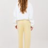 Comfortable jogger-style sweatpants are an excellent choice for everyday casual styling. They will work great both for everyday wear and for work in a less formal dress code, combining comfort with a modern look. The smooth pattern gives them a universal character and makes it easy to match them with different wardrobe pieces. The pants are made of soft and pleasant to the touch viscose with a touch of elastane, which ensures lightness, flexibility, and freedom of movement throughout the day. The high waist emphasizes the waist and provides a comfortable fit, while the tie at the waist allows for individual adjustment. The pants are finished with cuffs and ties at the bottom, giving them a sporty-urban character and ensuring a good fit. Practical side pockets are perfect for small items. This is a versatile model that pairs perfectly with a sweater, t-shirt, or elegant shirt, creating a stylish and comfortable look.