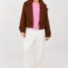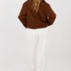 Casual jogger pants are a combination of comfort and stylish look, perfect for everyday wear and for a more relaxed work style. Made of a soft and stretchy blend of viscose with added elastane, they provide comfort and freedom of movement. The model features a smooth pattern, with decorative pleats on the front that give the pants an elegant character. The elastic band sewn in at the back ensures a good fit to the silhouette. The cuffs at the bottom of the legs emphasize the jogger style and provide comfort when wearing. The pants do not have a closure, and the side pockets increase their functionality. The whole is complemented by a decorative button, which is a stylish detail. Perfect for everyday styling with a hoodie, sweater, or shirt.