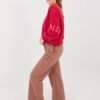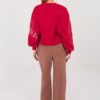 Straight leg sweatpants are a comfortable and stylish proposition in a casual edition. They will work perfectly for everyday wear, both during relaxation, walks, and in urban stylings. The straight legs give them a modern, minimalist character and provide freedom of movement. The model is made of high-quality cotton and polyester blend, which guarantees comfort, softness, and material durability. The high waist beautifully emphasizes the waist and ensures a comfortable fit to the silhouette. There is a practical tie at the waist for individual adjustment. The pants have side slip pockets, increasing the functionality of the model. The smooth pattern emphasizes their universal style, while the decorative embroidery on the left leg is a subtle, fashionable accent that gives the whole a unique character.