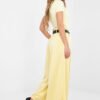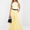 Elegant palazzo-style sweatpants are a combination of comfort and elegance in a modern edition. Made of high-quality blend of viscose, polyester and elastane, they impress with a buttery soft fabric that is extremely soft, delicate and exceptionally pleasant to the touch. The material beautifully drapes on the silhouette, providing comfort throughout the day. The high-waisted model has an elastic band sewn into the waist, which guarantees a perfect fit without feeling tight. Additionally, the included belt with a clasp accentuates the waist and gives the whole a sophisticated character. The lack of a classic closure increases comfort of use. Wide palazzo-style legs give the silhouette lightness and freedom, while decorative pleats on the front add a refined accent to the pants. The smooth pattern makes the model versatile and easy to style, perfect for everyday wear as well as for work. Side, insert pockets increase functionality, combining practicality with elegant style.