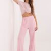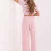 Extremely comfortable sweatpants made of buttery soft material, extremely soft, delicate and exceptionally pleasant to the touch. Thanks to the blend of viscose and elastane, the pants are flexible, lightweight and perfectly fit the silhouette, providing maximum comfort for everyday wear. The wide leg cut model enchants with wide legs that guarantee freedom of movement and a modern look. The high waist with an elastic band ensures a perfect fit and comfort of wearing, while the lack of fastening makes the pants easy and quick to put on. The dominant smooth pattern gives them a minimalist character, and the side, slip pockets add functionality without disturbing the simple line of the cut. Perfect for women who appreciate comfort, softness and modern, casual style.