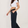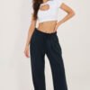 Sweatpants with a straight leg are a combination of comfort and modern style, perfect for everyday wear. The high-waisted model with pleating at the waist fits perfectly to the silhouette, emphasizing the waist and providing comfort. Additional tying at the waist allows for individual adjustment. Long, straight legs give the whole a casual yet organized character, making the pants perfect for both casual outfits and more minimalist sets. Made of a pleasant to the touch blend of viscose and elastane, they guarantee softness, flexibility, and comfort throughout the day. Practical, side slip pockets increase the functionality of the model. These are versatile sweatpants that combine comfort with a fashionable look.