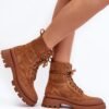 Women’s trappers made of eco-suede. Lace-up model. Set on a thick sole and a flat heel. Rounded toe. Ankle length upper. Insulated with shoe blanket. Stiffened heel counter. You will use this classic model for many autumn-winter stylizations!