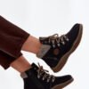 Women’s ankle boots made of eco leather. The model has a zipper and lacing, which ensures comfort and the possibility of a perfect fit to the foot. The interior lined with soft fur guarantees thermal comfort, and the rounded toes emphasize the classic character of the footwear. The rubber sole provides good grip and stability on various surfaces. An additional accent is a small patch placed on the side of the shaft. These boots are perfect for winter walks and everyday outings.
