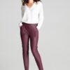 Maroon tailored trousers made of eco-leather. Wide rubber band at the waist, at the back. Large patch pockets at the front.