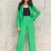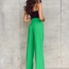 Long and wide-legged bell-bottom pants feature slanted slip pockets and a covered zipper closure on the side of the pants. Made of high-quality fabric of solid color. High top, which optically slims the silhouette, with a short top or blouse gently tucked inside the pants will be perfect. Loose pants are an ideal model for styling all year round. The product is made and sewn in Poland.