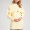 Simple cotton tunic, long sleeve decorated with a ruffle that goes over the bust line. Neckline. Longer semi-circular back.