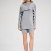 Simple cotton tunic, long sleeve decorated with a ruffle that goes over the bust line. Neckline. Longer semi-circular back.