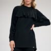 Simple cotton tunic, long sleeve decorated with a ruffle that goes over the bust line. Neckline. Longer semi-circular back.