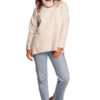 For exceptionally cold days, a comfortable loose-fitting sweater with a turtleneck and a stylish ribbed hem with a slit in the back will be a great choice.