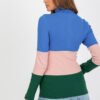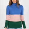 Women’s sweater with long sleeves and turtleneck. The sweater is made of ribbed fabric in three colors.