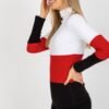 Women’s sweater with long sleeves and turtleneck. The sweater is made of ribbed fabric in three colors.