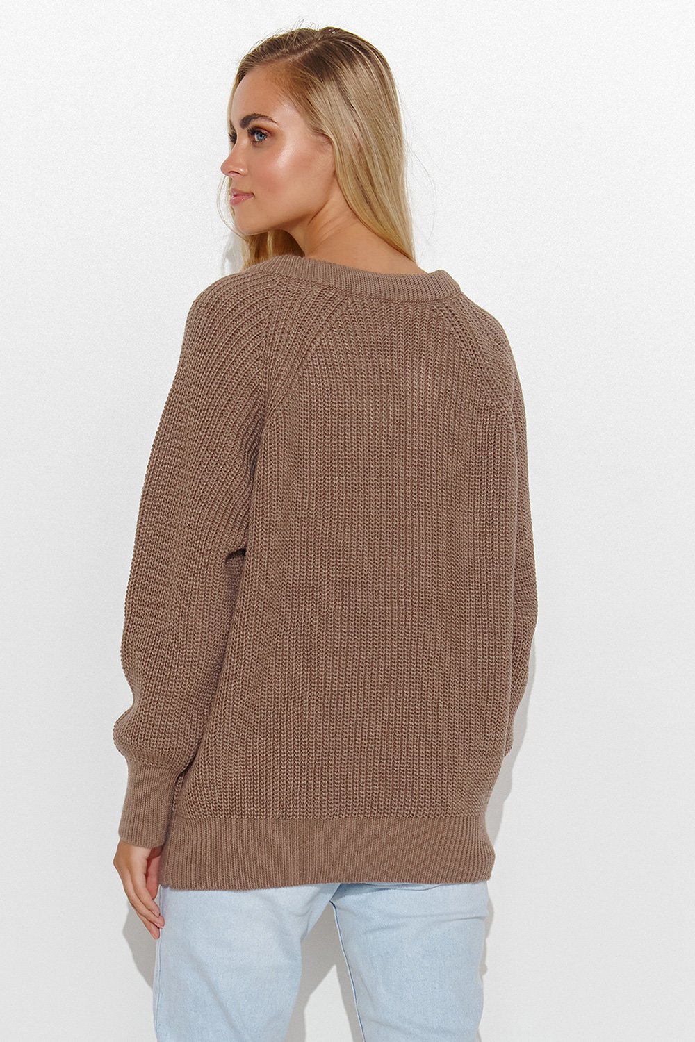 Invest in elegance and comfort at its best. This women’s turtleneck sweater is a must-have in every wardrobe. Made of high-quality fabric with a unique composition of 51% viscose, 30% PBT, and 19% nylon, it impresses with softness, elasticity, and durability. Thanks to the predominance of viscose, the sweater is extremely pleasant to the touch, allows the skin to breathe, and beautifully shapes the silhouette. The addition of synthetic fibers ensures that the material does not distort, maintains its shape even after many washes, and does not pill, guaranteeing the product’s longevity. Why choose this model? The classic turtleneck protects against cold and adds elegance, perfect for autumn and winter. The oversized cut with slightly dropped shoulder line provides freedom of movement and comfortable wear. Elastic cuffs on the sleeves and at the bottom of the sweater give the whole a fashionable character. Universal design – will work perfectly in everyday, casual stylizations, as well as in more elegant outfits for work or meetings. It pairs well with classic jeans, elegant fabric pants, or a pleated skirt. You can wear it with both ankle boots and sporty sneakers and always look stylish. If you are looking for a sweater that combines comfort, quality, and timeless style, this turtleneck model will be your favorite wardrobe piece for many seasons.