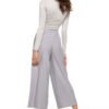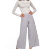 High waisted trousers with a wide leg. For a better shape we sew in darts both in the front and on the back, thanks to which the trousers fit beautifully around the waist. We sew in a decorative zipper on the side. Wide leg is our nod to the 70’s, although shortening them to 7/8 length gives a more modern look. Trousers are perfect for both elegant stylizations and more casual ones.