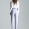 Grey classic trousers with pleats at the waist, slanted pockets at the side.Trousers with a zip at the left side. Legs slightly tapered at the bottom.
