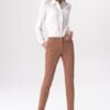 Caramel-colored, press-stud trousers will go well with many office fashion outfits. The tailored cut emphasizes feminine shapes, while the snap fastening is an accent that breaks the official style. Pleasant to the touch viscose-blend fabric ensures high wearing comfort.