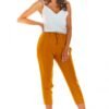Elegant tailored cigarette pants. Fitted to the figure. Waistband decorated with a frill and georgette. Perfect for everyday wear, looks great with elegant summer stilettos. You can also wear them with t-shirt and espadrilles. Made of flowing fabric.