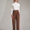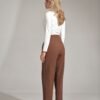 Brown 7/8 trousers, two pleats at the front, tapered legs, pockets in the side seams, fastened at the front with a covered zip, high rise.