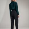 Black 7/8 trousers, two pleats at the front, slightly tapered legs, pockets in side seams, fastened at the front with a covered zip, high rise.