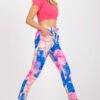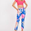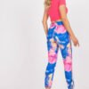 Women’s pants with a straight cut made of colourful material. Zipper and button fastening, with slip pockets on the sides. A set with a belt in the same color scheme.