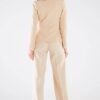 High rise pants with wide legs, no pockets. Pants with zipper and button at the front. They look perfect with jacket of the same color. Product made in Poland.