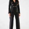 High rise pants with wide legs, no pockets. Pants with zipper and button at the front. They look perfect with jacket of the same color. Product made in Poland.