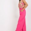 Fabric pants with a higher rise, with a zip and button fastening. Slip-on pockets on the sides. Ideal for many stylings.
