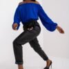 Women’s pants made of ecological leather, with an elastic waistband and ties. Slip-on pockets on the sides. Pants with high rise, patch on the front.