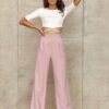 Long and wide-legged bell-bottom pants feature slanted slip pockets and a covered zipper closure on the side of the pants. Made of high-quality fabric of solid color. High top, which optically slims the silhouette, with a short top or blouse gently tucked inside the pants will be perfect. Loose pants are an ideal model for styling all year round. The product is made and sewn in Poland.