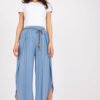 Airy women’s pants with a high waist and decorative waist tie.