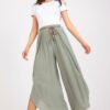 Airy women’s pants with a high waist and decorative waist tie.