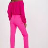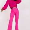 Pants with high rise, elastic waistband and decorative belt. There are slip pockets on the sides. They have a plain pattern, so they can be worn for evening, date night or work.