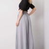 Material pants with wide legs, elastic waistband. The pants come with a decorative belt.