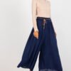 Material pants with wide legs, elastic waistband. The pants come with a decorative belt.