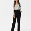 Here are fabric pants that combine comfort and style. Made of durable fabric, they are not only comfortable, but also elegant. They have an elevated top, which emphasizes the waist and adds a modern touch. The legs taper slightly at the bottom and are pressed at an angle, giving the pants an elegant look. There is a zipper and two hook-and-eye closures on the front, making them easy to put on. There are belt loops at the waist of the pants, allowing you to add a belt and adjust them to your figure. At the back, the pants have imitation pockets, which adds to their character. These are the perfect pants for a variety of occasions, both for more formal events and for everyday wear. Designed and sewn in Poland.