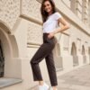 Stylish and fashionable pants that are a combination of comfort and elegance. The casual cut of the long legs fits perfectly on any type of figure, providing comfort even during the most intense day. The fabric used in the production, pleasant to the body viscose, ensures excellent feel and durability of the material. Jones pants perfectly fit the figure, thanks to the sewn-in elastic waistband. The whole is complemented by practical side pockets, adding nonchalance to the model, as well as functionality that you will appreciate every day. The model is ideal for sneakers and elegant stilettos. The product is made and sewn in Poland.