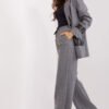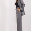 Casual style high-waisted fabric pants with waist tie and slip pockets. Pants with wide legs made of material in gray-black color. A proposition for many occasions.