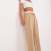These elegant palazzo pants are the perfect choice for a variety of occasions, from everyday situations to formal events or evening parties. Their stylish design and high-quality material make them a reliable base for a wide variety of looks. Made primarily of polyester, these pants are extremely durable and crease-resistant, making them ideal for everyday wear and the spring/summer season. The fine-striped material adds lightness and subtlety, making them suitable for a variety of occasions. Their high waistline emphasizes the waist and adds elegance to the entire silhouette. The wide palazzo-style legs give them a luxurious feel and provide freedom of movement, making them a comfortable choice for long days at work or evening outings. The front of the pants features decorative darts, which add originality and a unique touch. In addition, the pants have slip-in side pockets, which is a practical addition to the overall design. The palazzo pants tied at the waist allow you to adjust the fit, which makes them fit perfectly on any figure. Let these pants become an indispensable part of your closet, adding chic and elegance to any outfit, regardless of the occasion.