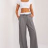 These elegant palazzo pants are the perfect choice for a variety of occasions, from everyday situations to formal events or evening parties. Their stylish design and high-quality material make them a reliable base for a wide variety of looks. Made primarily of polyester, these pants are extremely durable and crease-resistant, making them ideal for everyday wear and the spring/summer season. The fine-striped material adds lightness and subtlety, making them suitable for a variety of occasions. Their high waistline emphasizes the waist and adds elegance to the entire silhouette. The wide palazzo-style legs give them a luxurious feel and provide freedom of movement, making them a comfortable choice for long days at work or evening outings. The front of the pants features decorative darts, which add originality and a unique touch. In addition, the pants have slip-in side pockets, which is a practical addition to the overall design. The palazzo pants tied at the waist allow you to adjust the fit, which makes them fit perfectly on any figure. Let these pants become an indispensable part of your closet, adding chic and elegance to any outfit, regardless of the occasion.