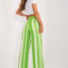 Zip and button fastening fabric trousers are the perfect choice for women who value elegance and comfort. With their classic cut and finish, they are a versatile wardrobe item suitable for various occasions. The elegant cut makes these trousers perfect for both everyday outfits and more formal occasions. The wide legs add sophistication and class, while providing comfort. They are perfect for everyday wear, allowing you to create a stylish and comfortable outfit. They are also a great choice for business meetings, lunches, or dinners where a more formal attire is required. With their stylish appearance and trendy striped pattern, these trousers will also work well for various events. They are made of high-quality polyester, which is durable and resistant to creases. The striped fabric gives them a modern look, making them stand out from other trousers. The high waist emphasizes the waistline and provides comfortable wearing, giving the silhouette an elegant appearance. The wide legs are a fashionable choice that allows for freedom of movement and an elegant look. Such a design is not only comfortable, but also adds refinement to the outfit. Zip and button fastening: The classic fastening ensures comfort and security. The fastened belt adds style and allows for a perfect fit. The side pockets are practical and discreet, adding functionality without sacrificing elegance. These trousers are the perfect choice for women who value a combination of elegance, comfort, and modern style.
