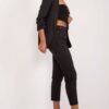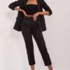 Elegant chino trousers made of smooth material dominated by polyester. They are perfect for various occasions, both for everyday wear, for work, and for more formal visits. Thanks to their high waist, they provide comfort and a stylish look. Straight legs add a classic touch, while the zipper and button closure ensure usability. Additionally, they are equipped with a fastening belt and practical slip pockets, making them not only aesthetic but also functional wardrobe item.