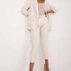 Elegant chino pants made of smooth material dominated by polyester. They are perfect for various occasions, both for everyday wear, for work, and for more formal visits. Thanks to their high waist, they provide comfort and a stylish look. Straight legs add a classic character, and the zip and button closure ensures ease of use. Additionally, they are equipped with a fastened belt and practical slip pockets, making them not only aesthetic but also functional wardrobe item.