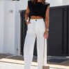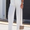 Bahari pants simple, classic, zippered and buttoned, with two pockets on the sides. This is a classic that you will use all year round and in styling for different occasions! Pants sewn from high-quality, flowing and non-fraying fabric. The high waistline outlines the waist, and the comfort of wearing is ensured by the elastic sewn in the back. In the back of the pants sewn elastic for comfort of wearing. Pants designed and sewn in Poland. Leg length measured inside.