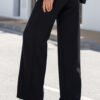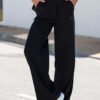 Bahari trousers, straight and classic, fastened with a zipper and button, with two side pockets. This classic piece can be used all year round and styled for various occasions! The trousers are made from high-quality, flowing, and non-creasing fabric. The high waist accentuates the waistline, and the elastic band at the back ensures comfort while wearing. There is also an elastic band sewn into the back of the trousers for added comfort. Designed and made in Poland. Leg length measured on the inside.