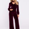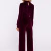 Stylish women’s pants made of soft and elegant velour knit, which combine comfort with a fashionable look. The model has widened legs, which add lightness and casualness to the silhouette. The front features decorative stitching running along the legs, adding a sophisticated detail. At the waist, an elastic waistband ensures a perfect fit and all-day comfort. Designed and sewn in Poland, the pants are a great choice for stylish yet comfortable styling on a daily basis or for special occasions.