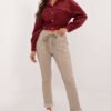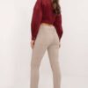 Women’s glossy fabric pants, ideal for everyday wear and for work. Made from a soft blend of viscose, nylon and elastane, they offer comfort and flexibility. Casual style makes them perfect for a variety of outfits. The mid-rise with waist tie allows for a customized fit, while the tapered legs give them a modern and elegant look. The smooth pattern emphasizes their simplicity, while practical side slip pockets add functionality. They’re a versatile closet piece that can be successfully paired with a variety of tops and accessories.